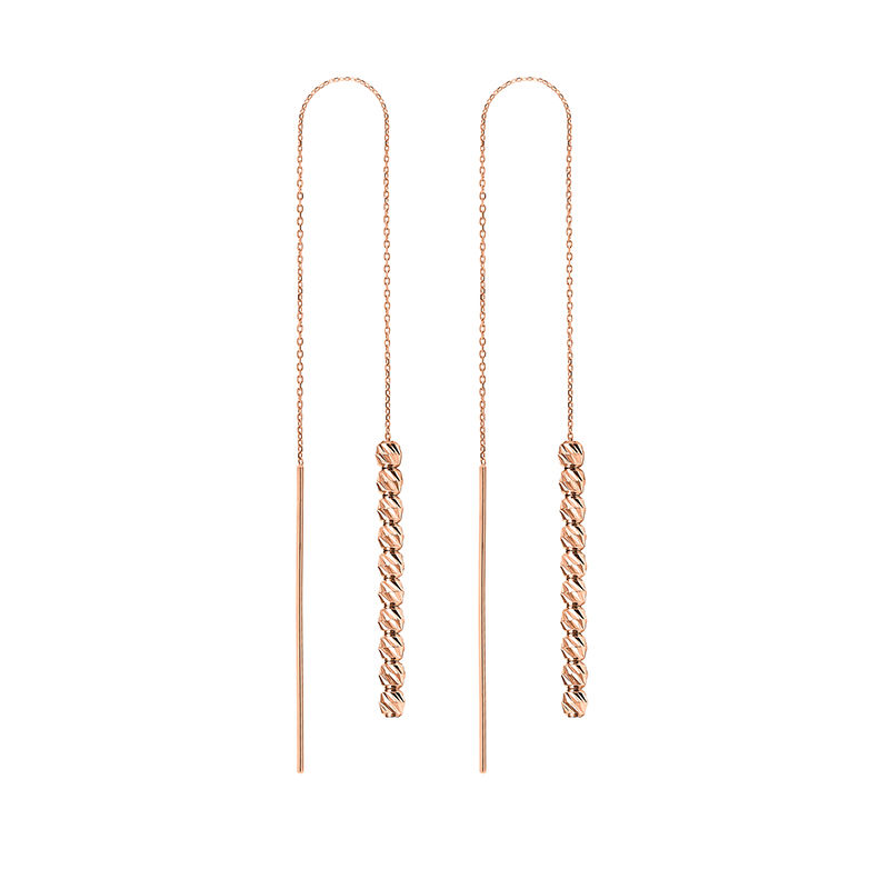 A Diamond-Cut Gold Ball from Italy is not just a piece of jewelry; it is a blend of artistry, tradition, and luxury. Its exquisite design, combined with Italian craftsmanship, ensures that it remains a cherished accessory for years to come. The gold ball chain dangle earring is cut to replicate a diamond: dainty, elegant and sexy. This earring proves the craftsmanship and the designer's unwavering spirit.