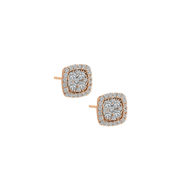 Detacheable Halo Cushion-Shape Round Diamond Earrings