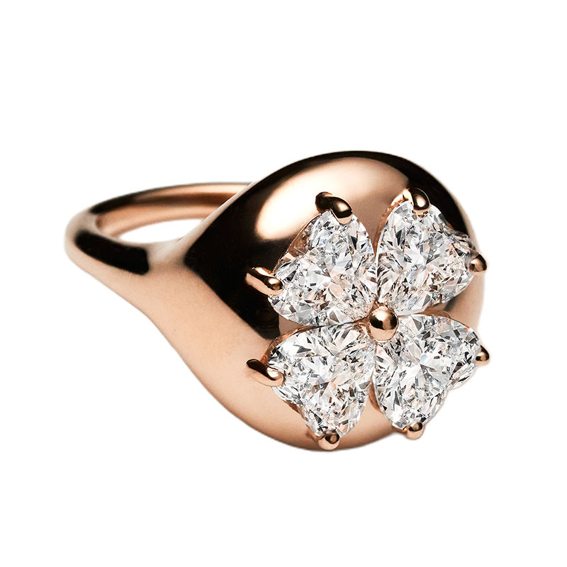 Four heart-shaped diamonds wrap in bold gold, with curves inspired by the stiletto heel.