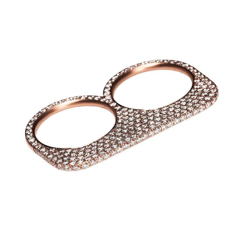 Featuring a double 2.3mm round-band structure, this ring is set with high-top diamonds along just one side—a subtle yet striking contrast that elevates the entire look.